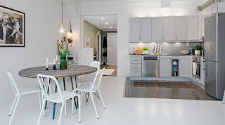 Los suelos con juntas son muy bonitos pero poco prácticos para la cocina, ya que acumulan suciedad y pueden mancharse con grasa o restos de alimentos. Si no piensas renunciar a las juntas, elígelas oscuras, aunque hayas optado por un suelo claro.